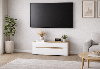 Тумба Анри под телевизор с выдвижными ящиками Швейцарский вяз, Белый