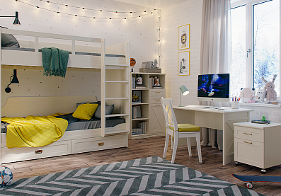 С этой мебелью будут хорошо сочетаться аксессуары в стиле неоклассика, ковры с винтажным потертым рисунком, яркий прямой или угловой диван (если захотите добавить акцентов). Если же вам нравится более спокойный интерьер — можно выбрать диван или кресла в серых оттенках. Конечно же, не забудьте про журнальный столик на высоких ножках.